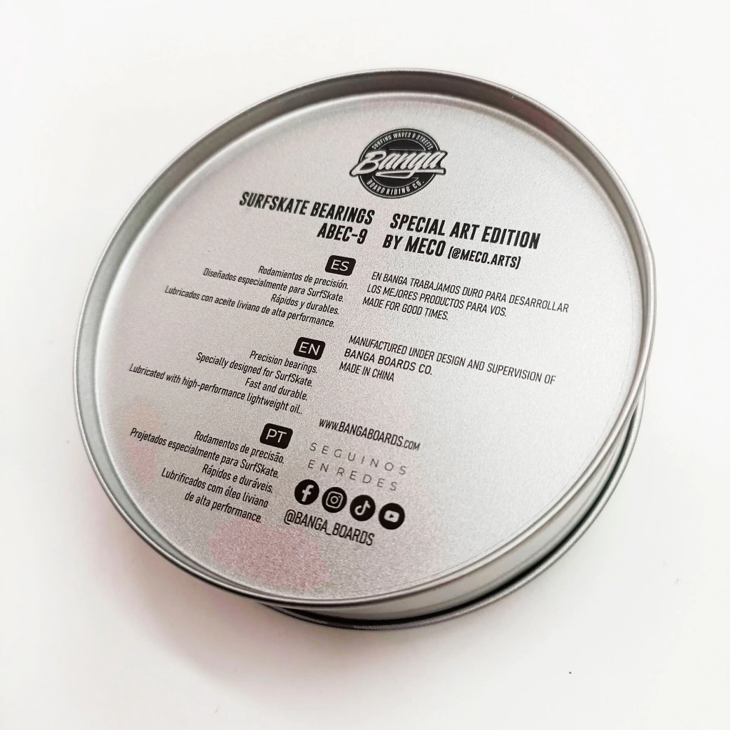 Eleva tu experiencia de surfskate con los rulemanes BANGA ART Edition, diseñados especialmente para quienes buscan máxima precisión y rendimiento en cada movimiento. Estos rodamientos de alta calidad ofrecen una performance superior, ideales para deslizarte con fluidez y controlar cada giro como si estuvieras sobre una ola.